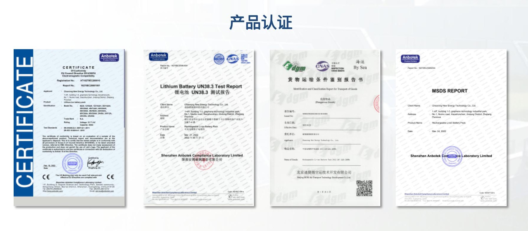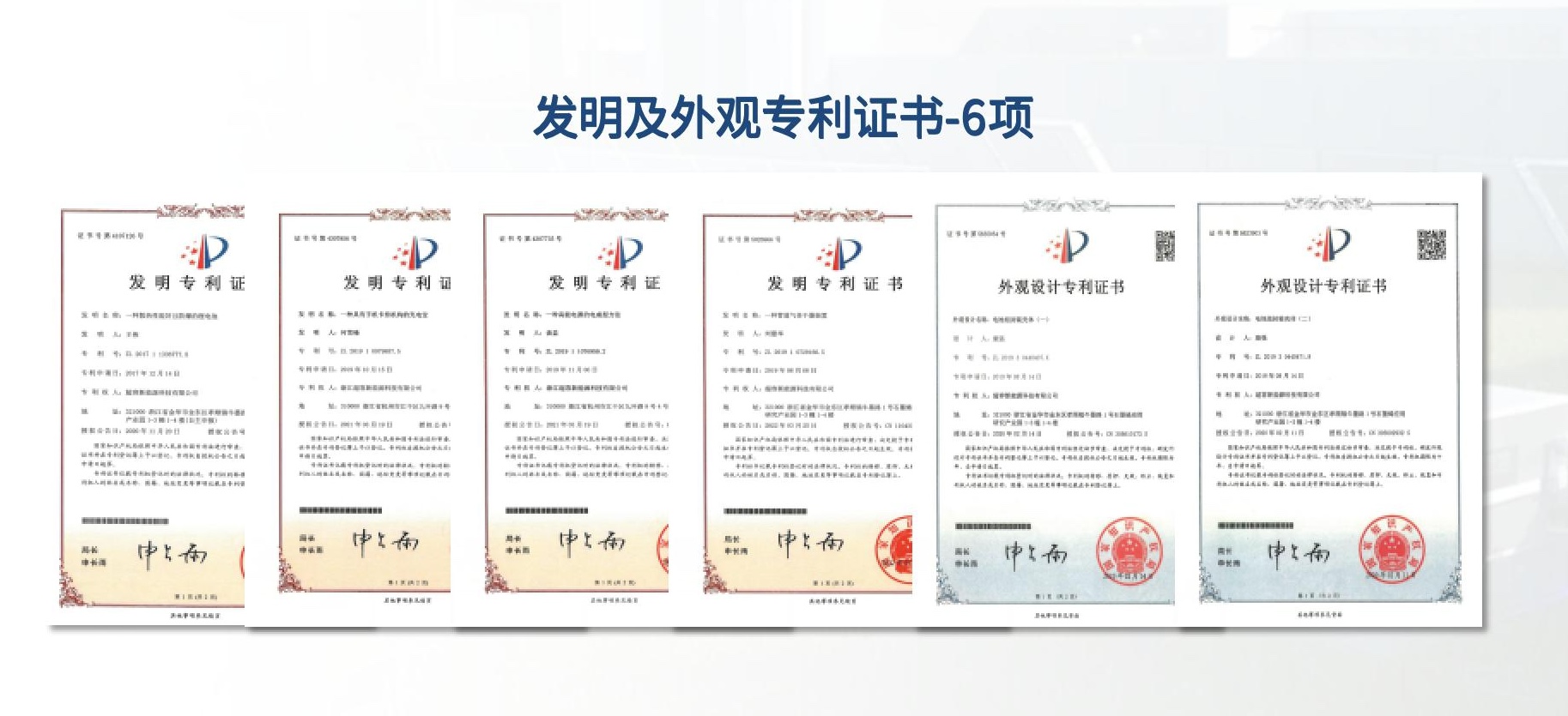 6、公司已经申请发明专利10个,实用新型专利/外观专利 31个。审查通过下发证书:发明专利7个,实用新型专利22个。已有5款产品通过国家化学电源产品质量检测中心测试。